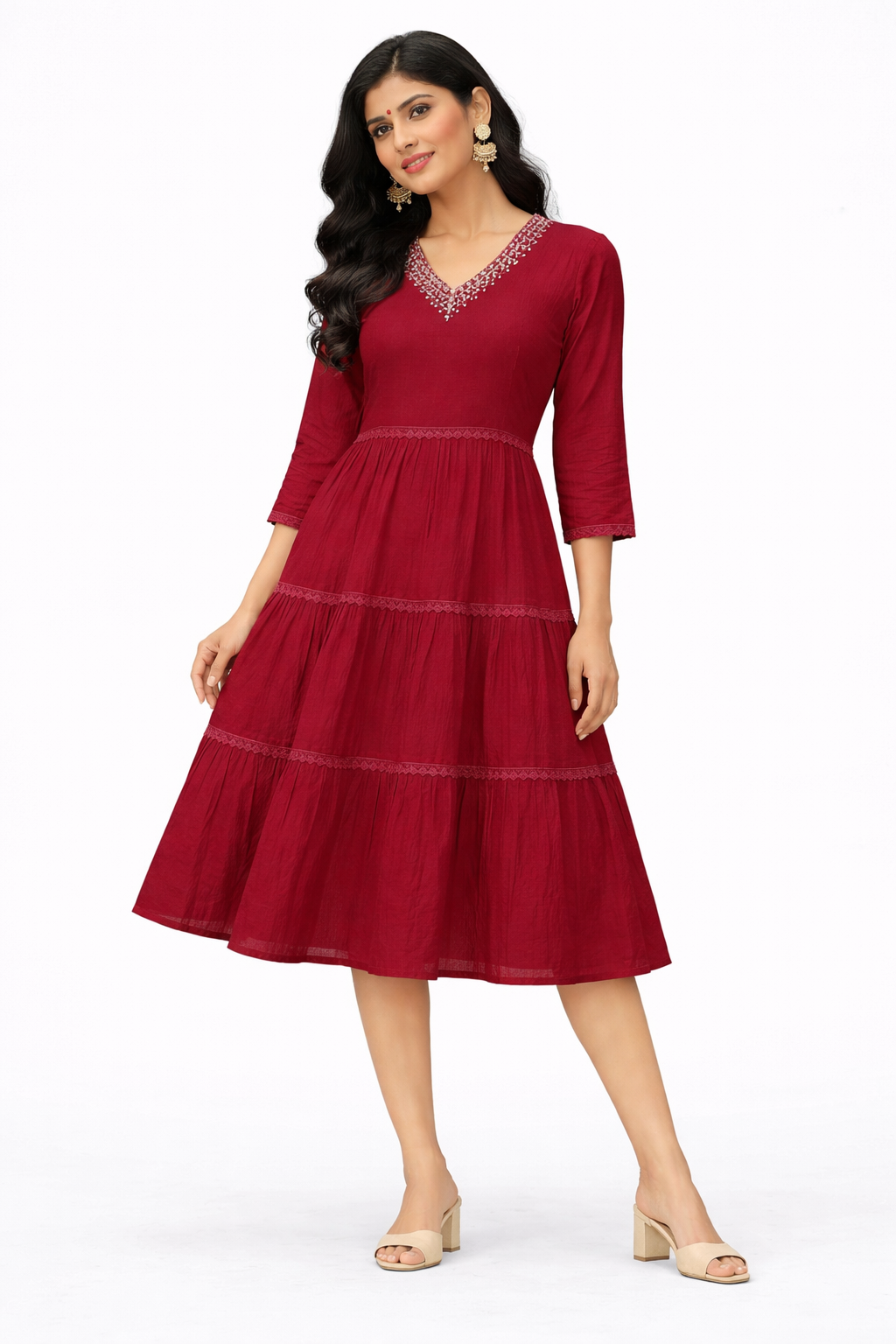 Be the first to review “Crimson Elegance Tiered Midi Dresses”
