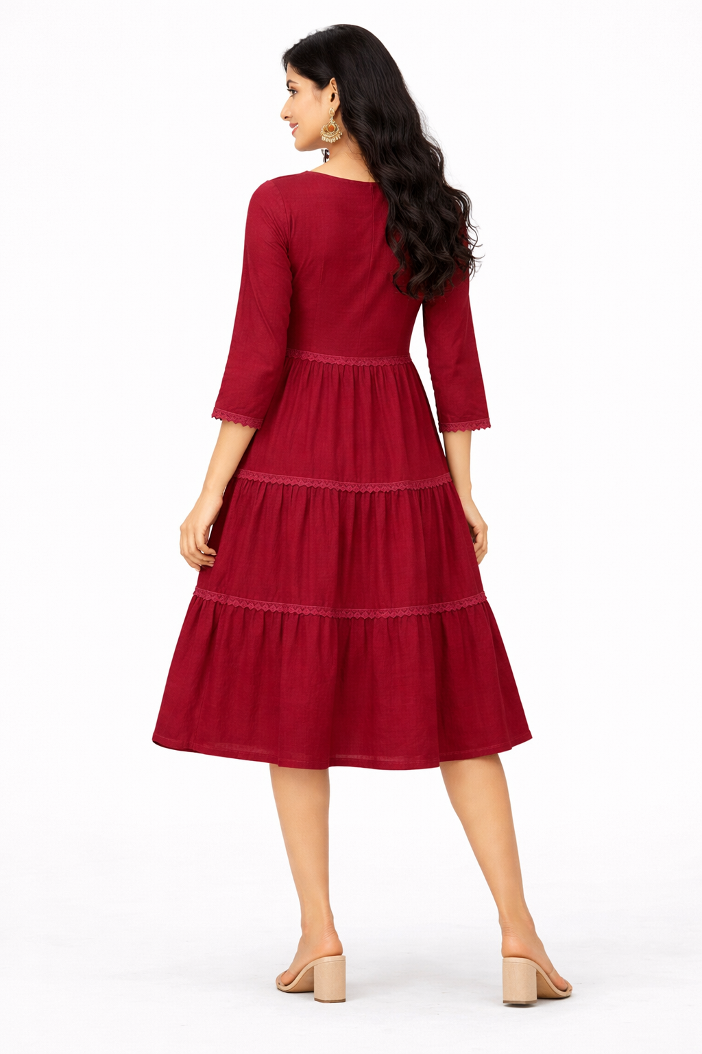 Crimson Elegance Tiered Midi Dresses