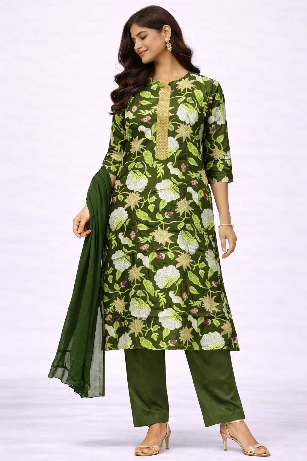 Be the first to review “Green Floral Printed Kurta Set with Dupatta”